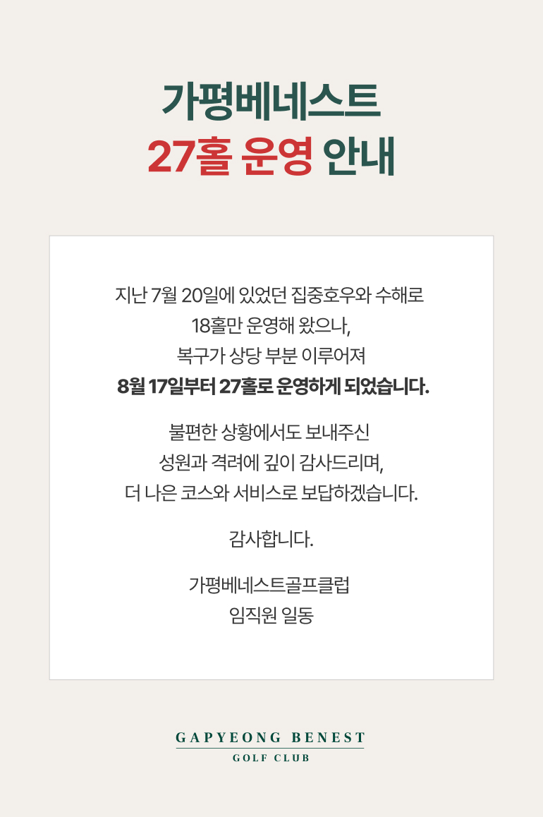 가평베네스트 27홀 운영 안내